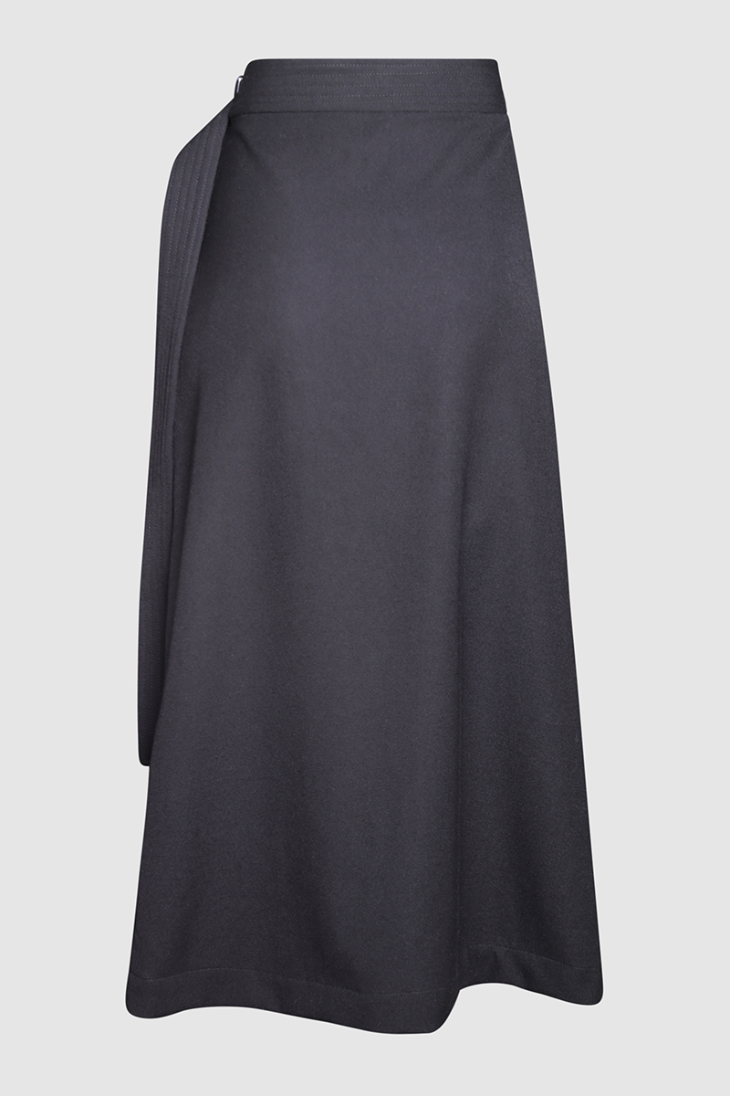 Belted A-Line Wool Wrap SkirtRaey