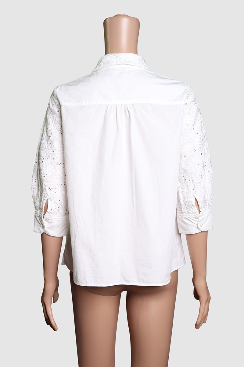 Cotton Blouse with Eyelet Lace SleevesDAKS