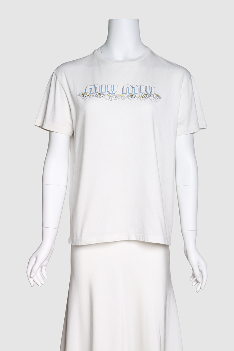 Logo Embroidered Cotton T-ShirtMiu Miu