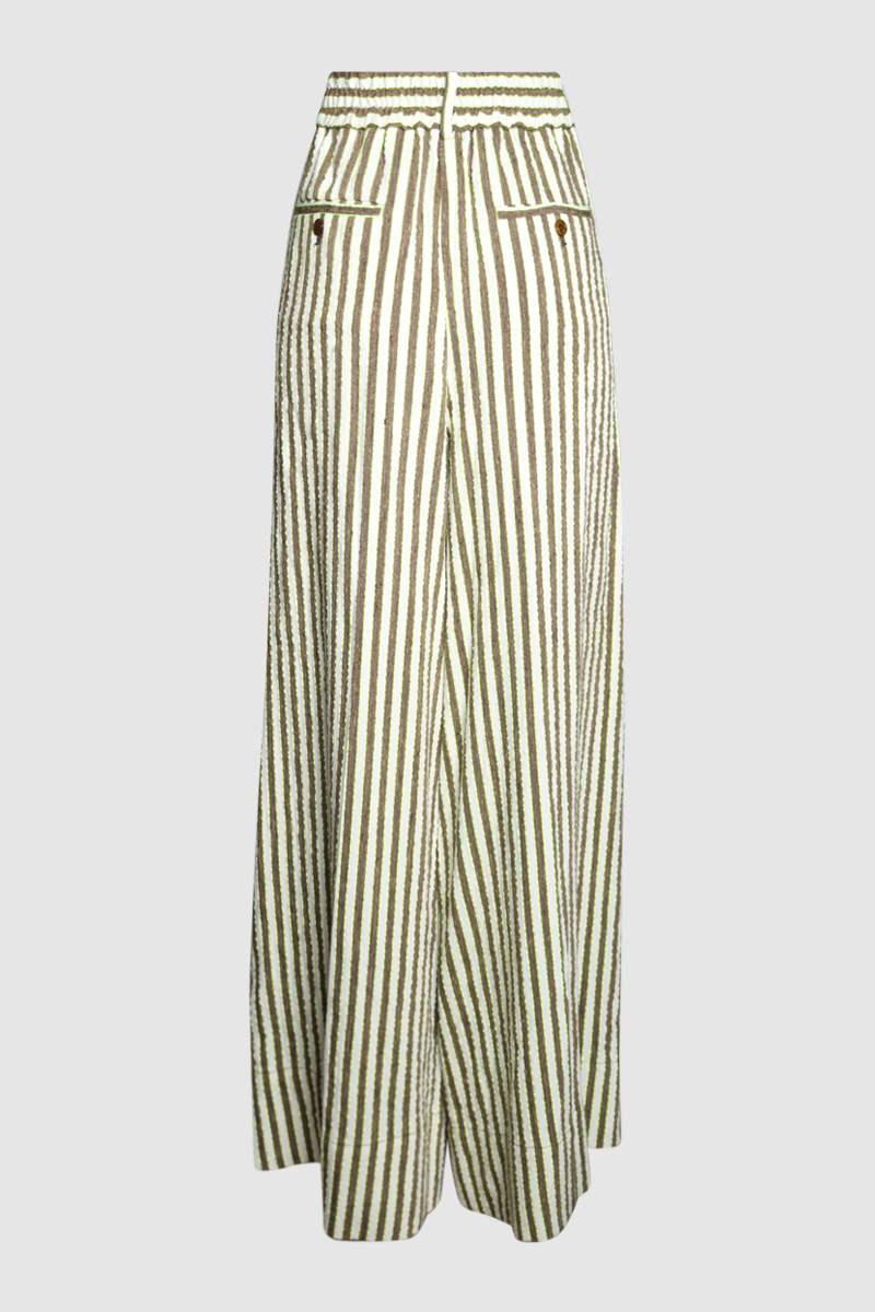 Pleated Striped Seersucker Wide Leg PantsChristopher John Rogers