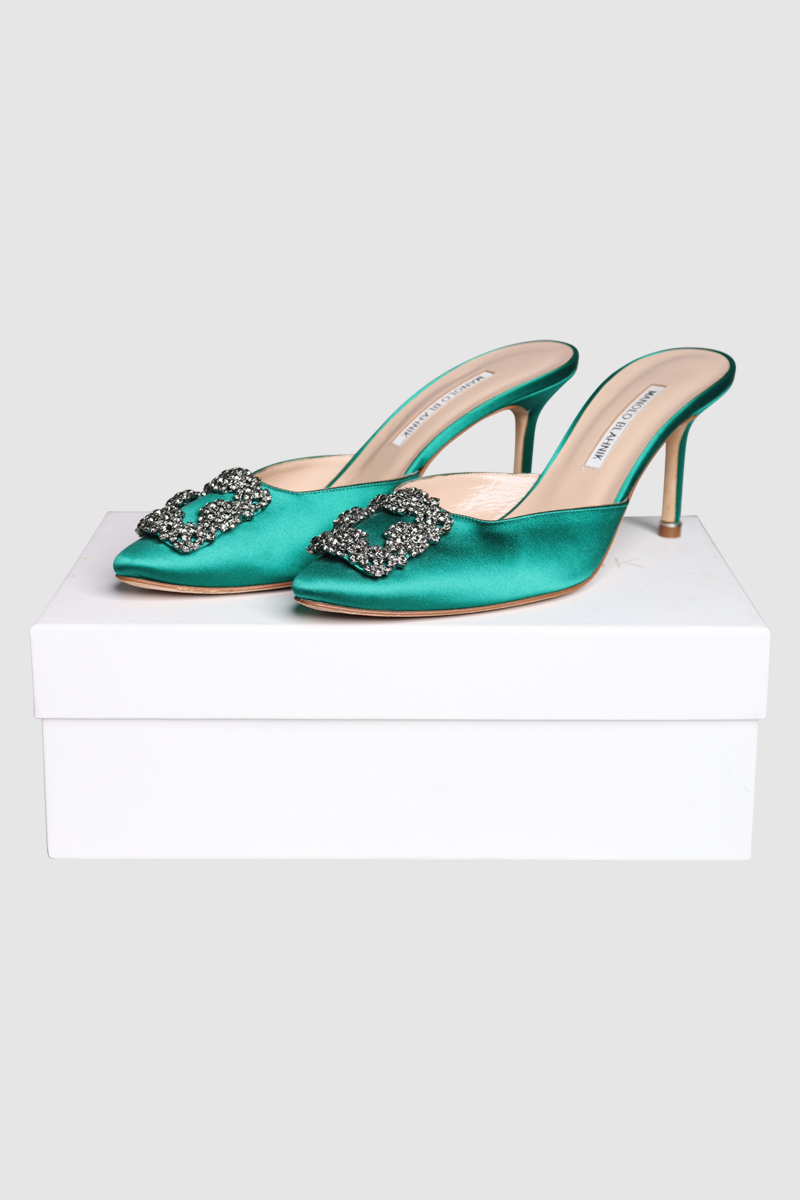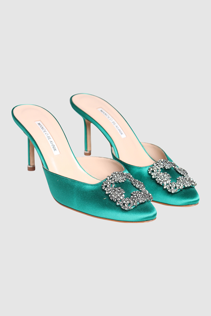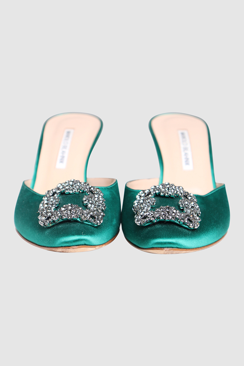 Satin Jewel Buckle MulesMahnolo Blahnik