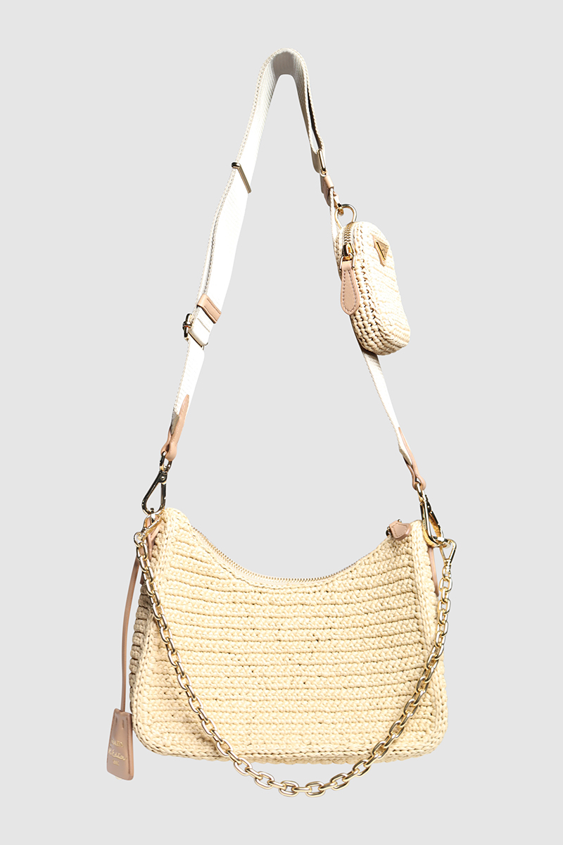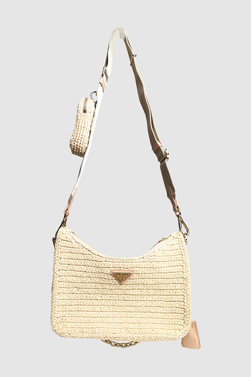 Re-Edition Crochet Raffia Shoulder BagPrada